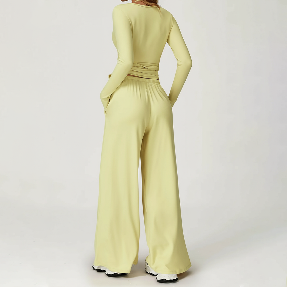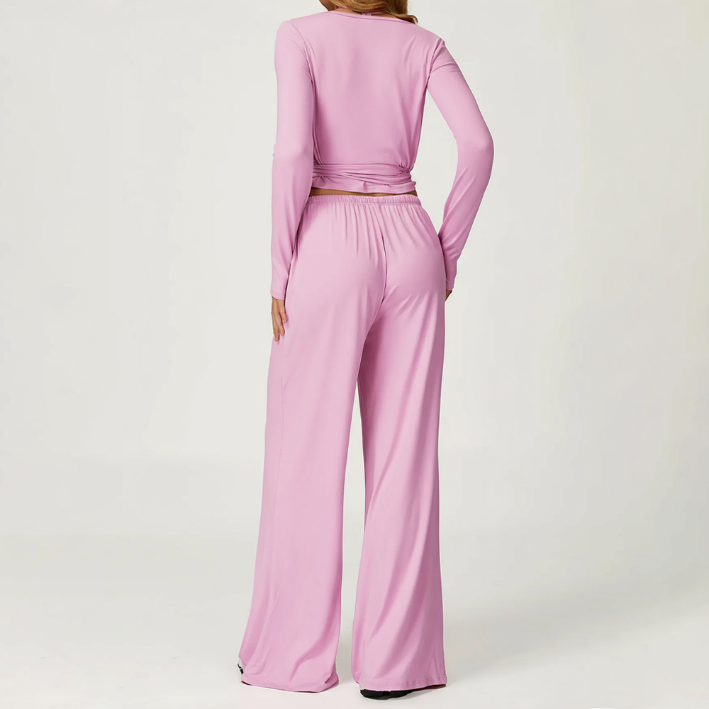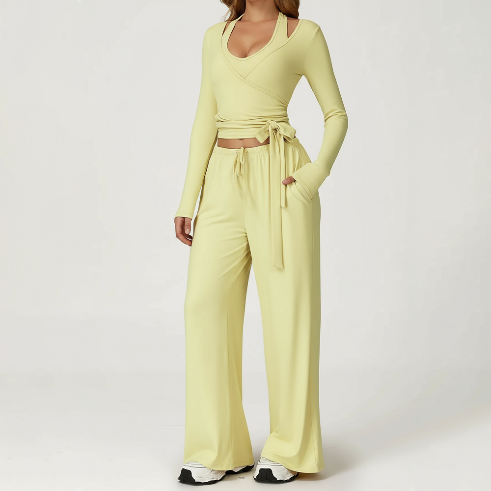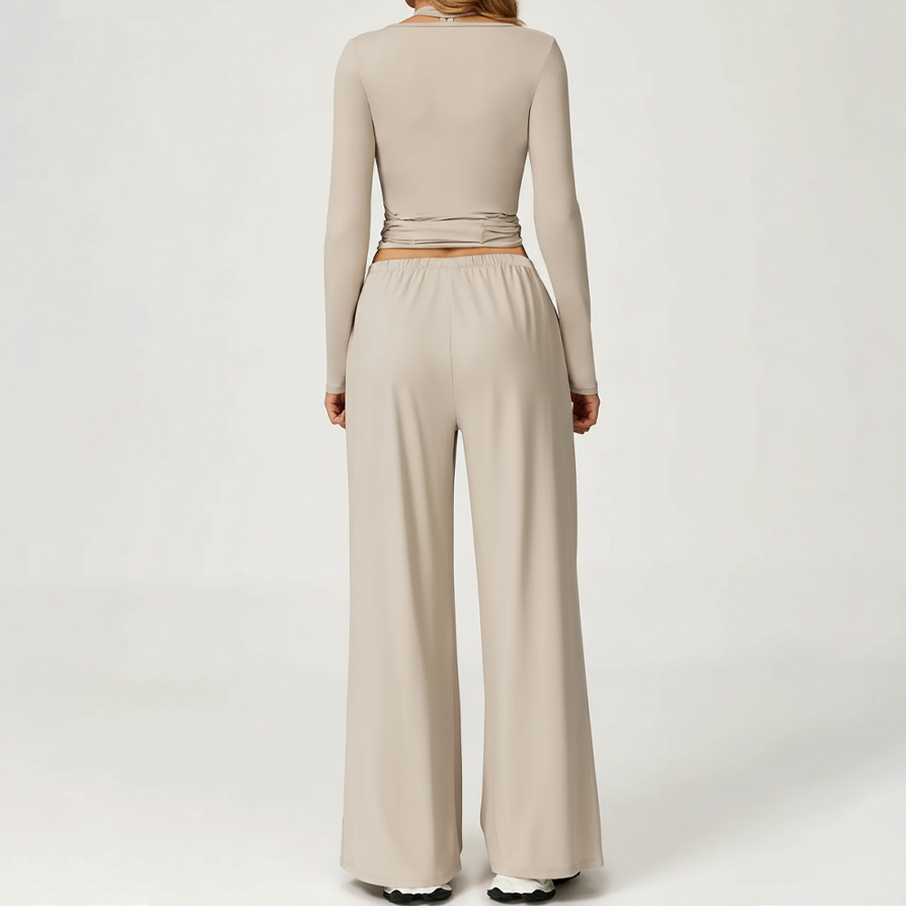 La taille haute du pantalon affine votre silhouette et offre un maintien parfait, tandis que le top crop apporte une touche de féminité moderne. Les détails soignés - du nœud élégant aux finitions impeccables - témoignent d'une qualité supérieure.