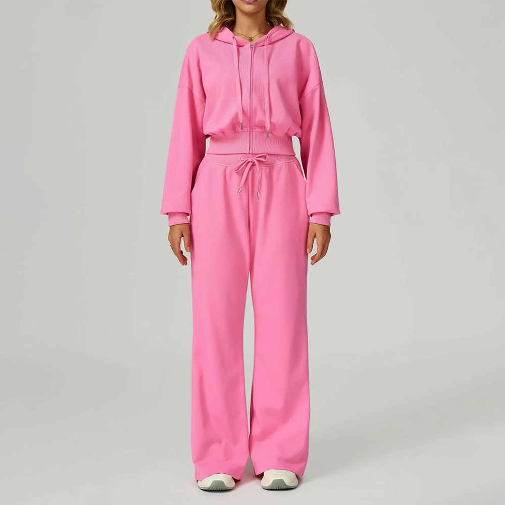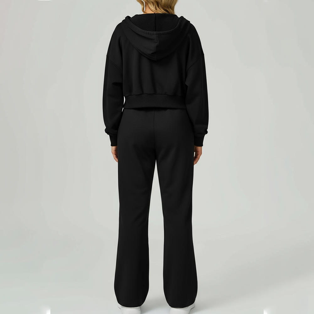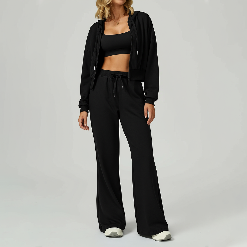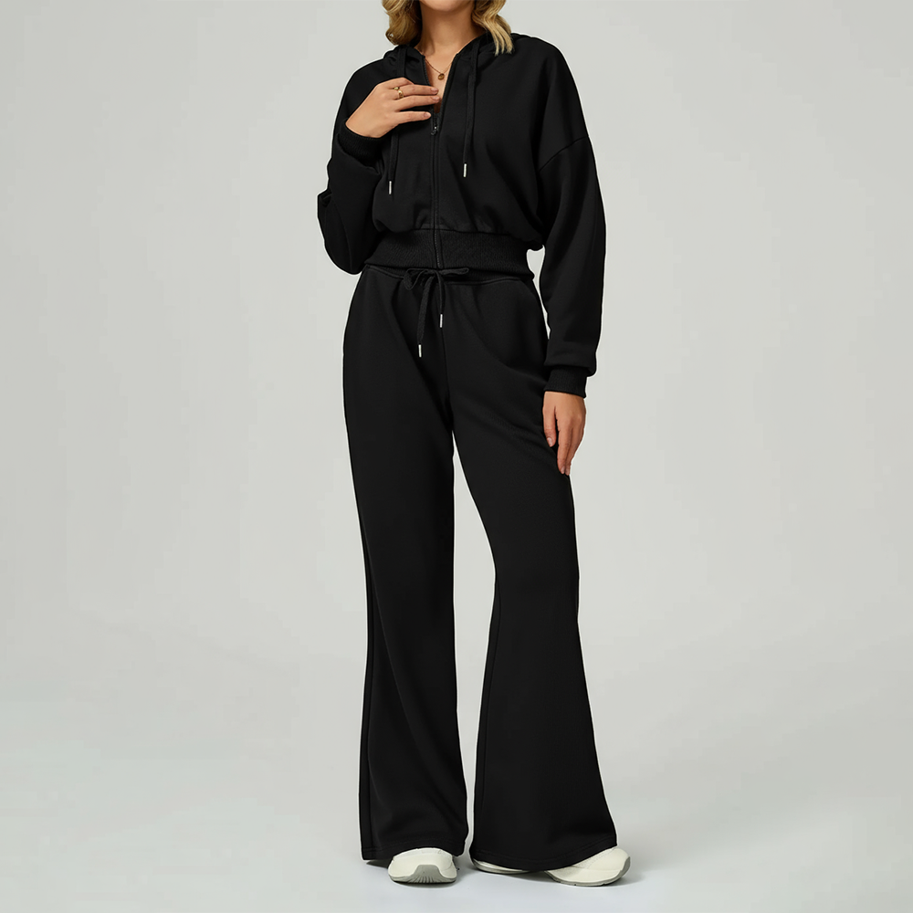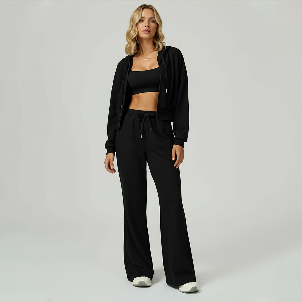 Style moderne - Coupe crop tendance, pantalon large fluide et veste zippée à capuche pour un look athleisure chic