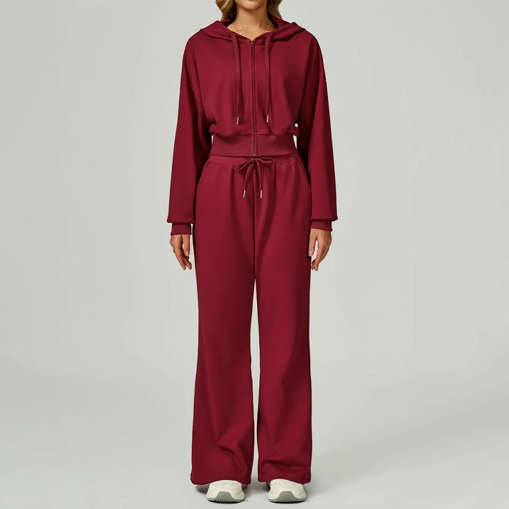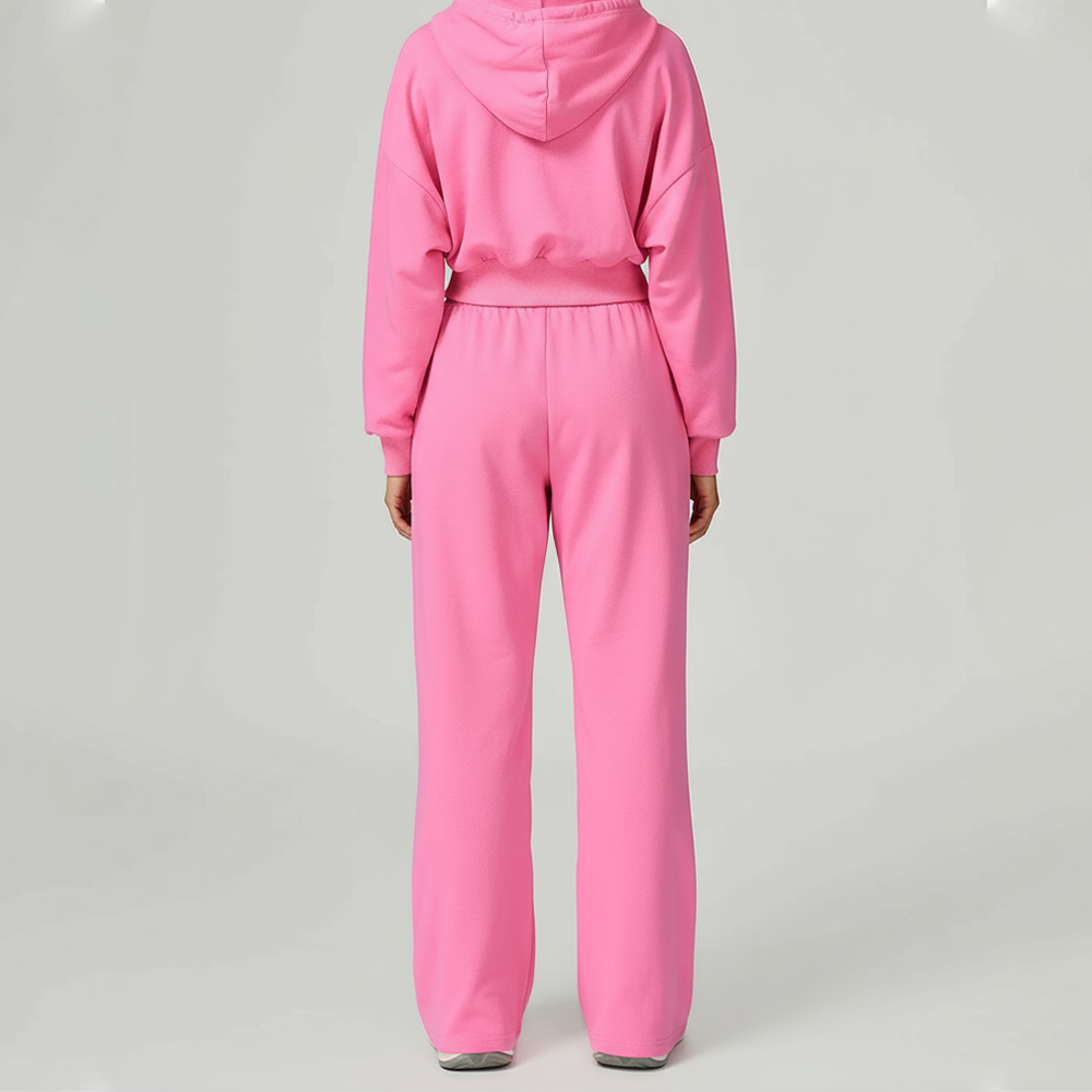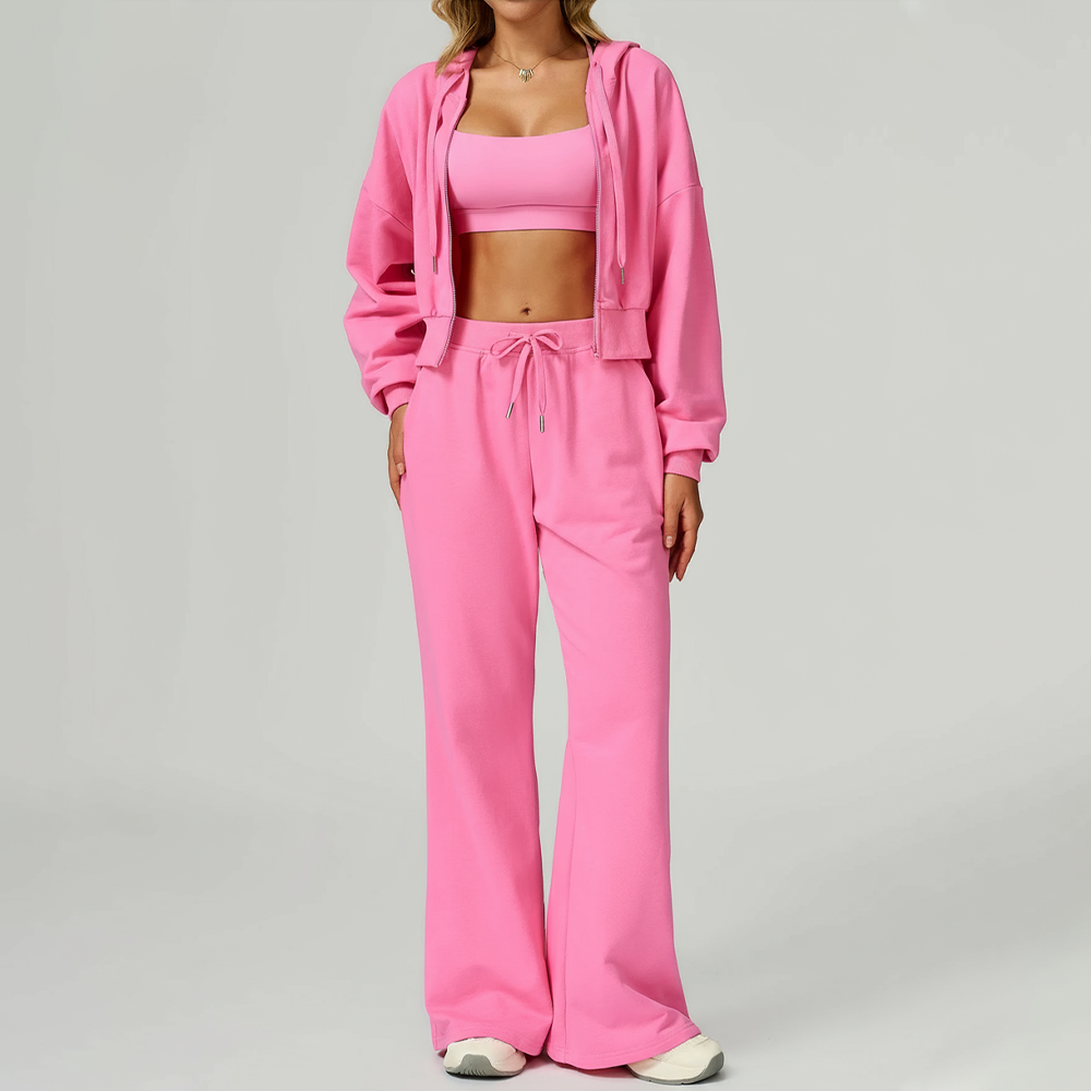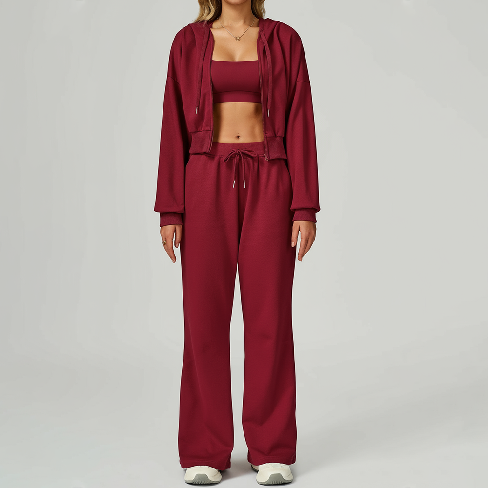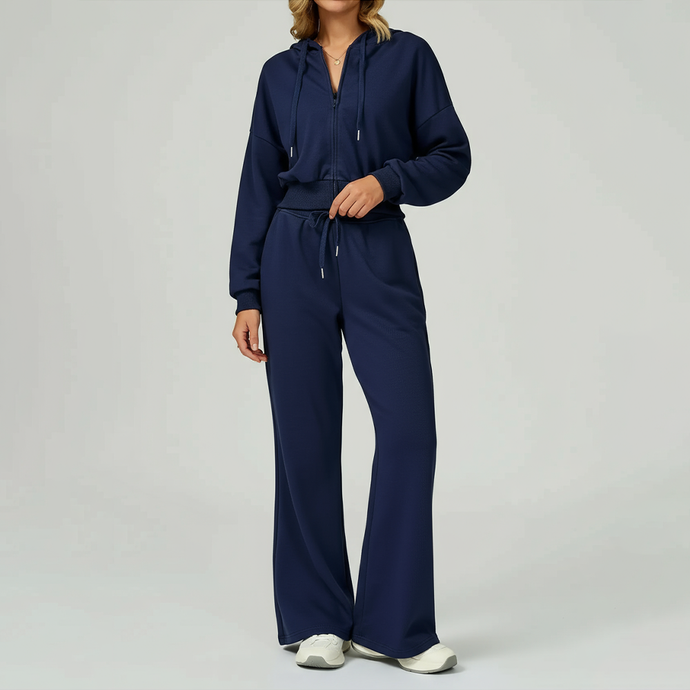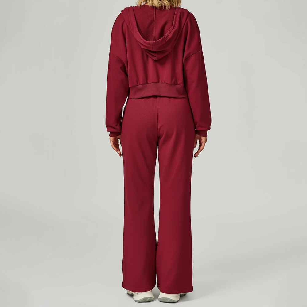Style moderne - Coupe crop tendance, pantalon large fluide et veste zippée à capuche pour un look athleisure chic