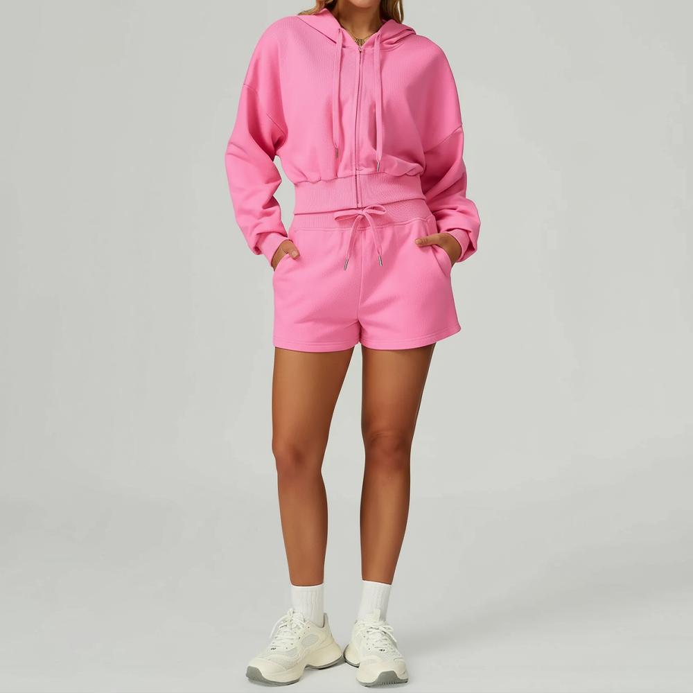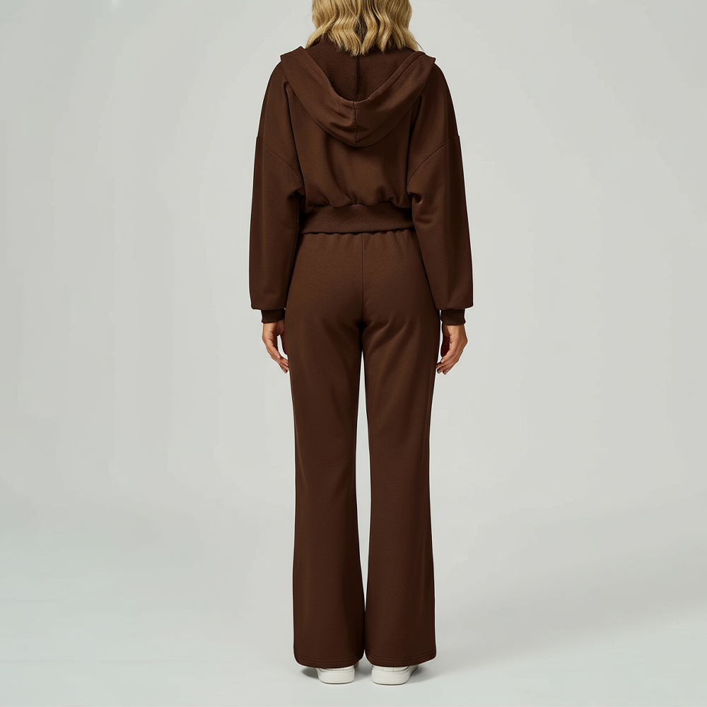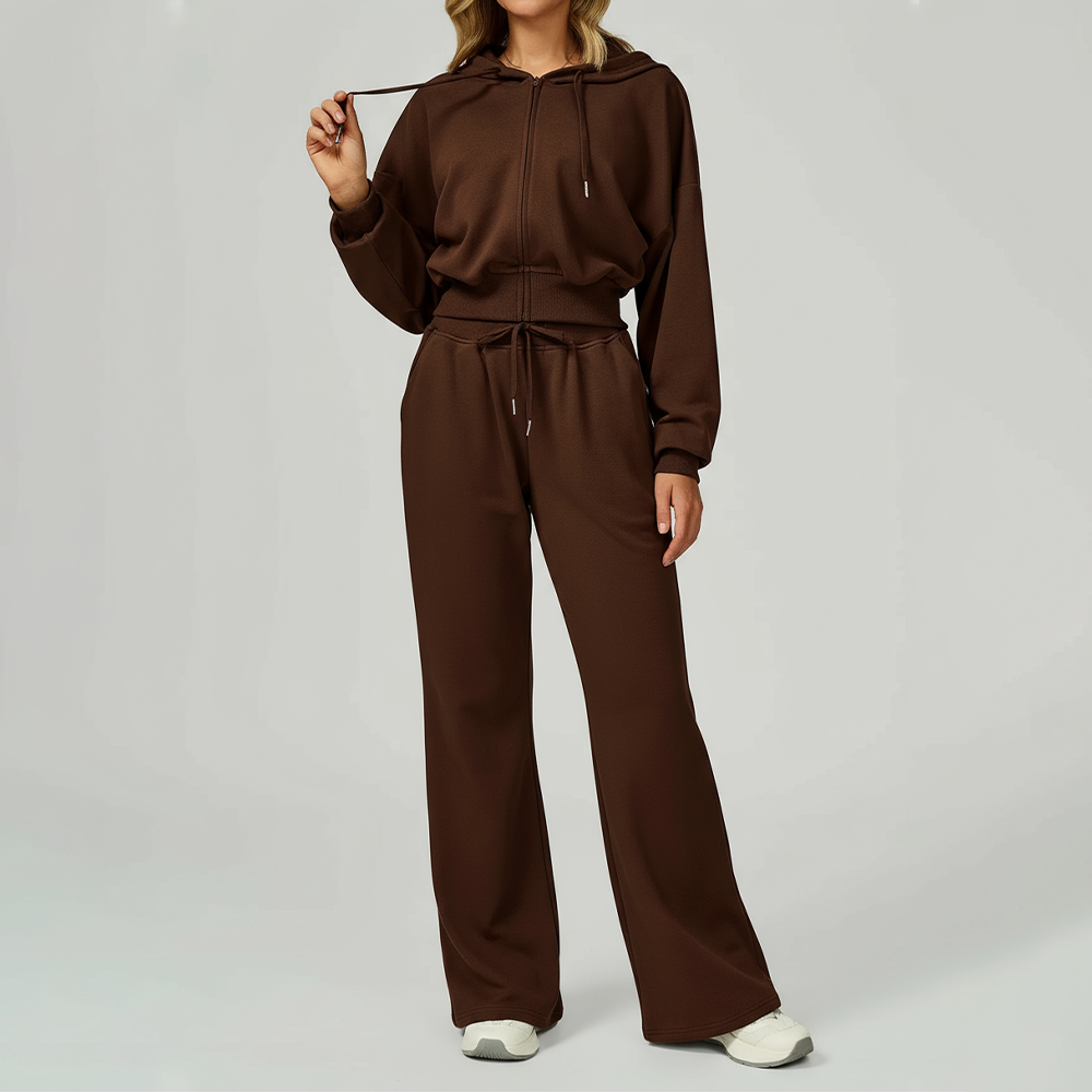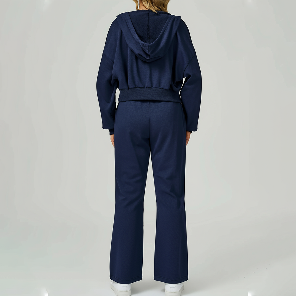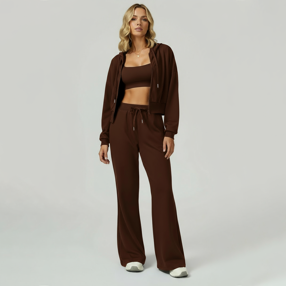 Style moderne - Coupe crop tendance, pantalon large fluide et veste zippée à capuche pour un look athleisure chic