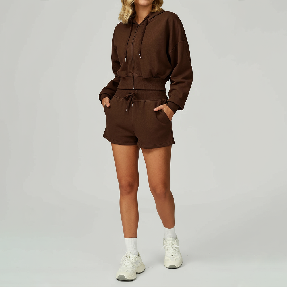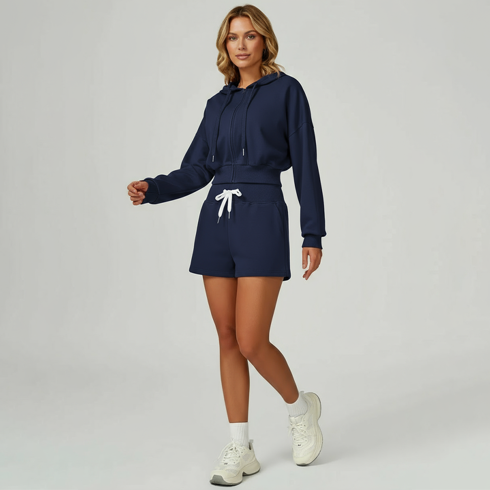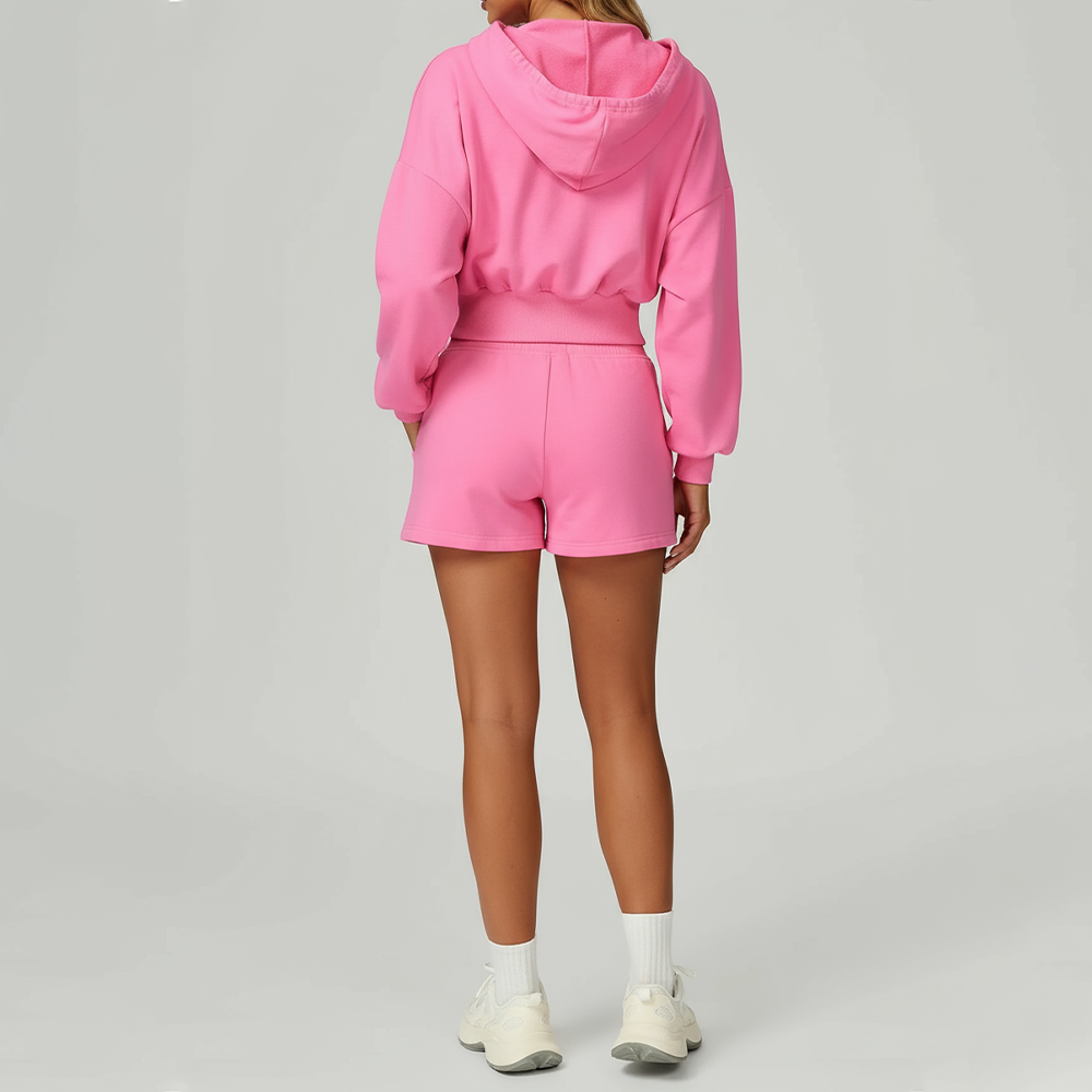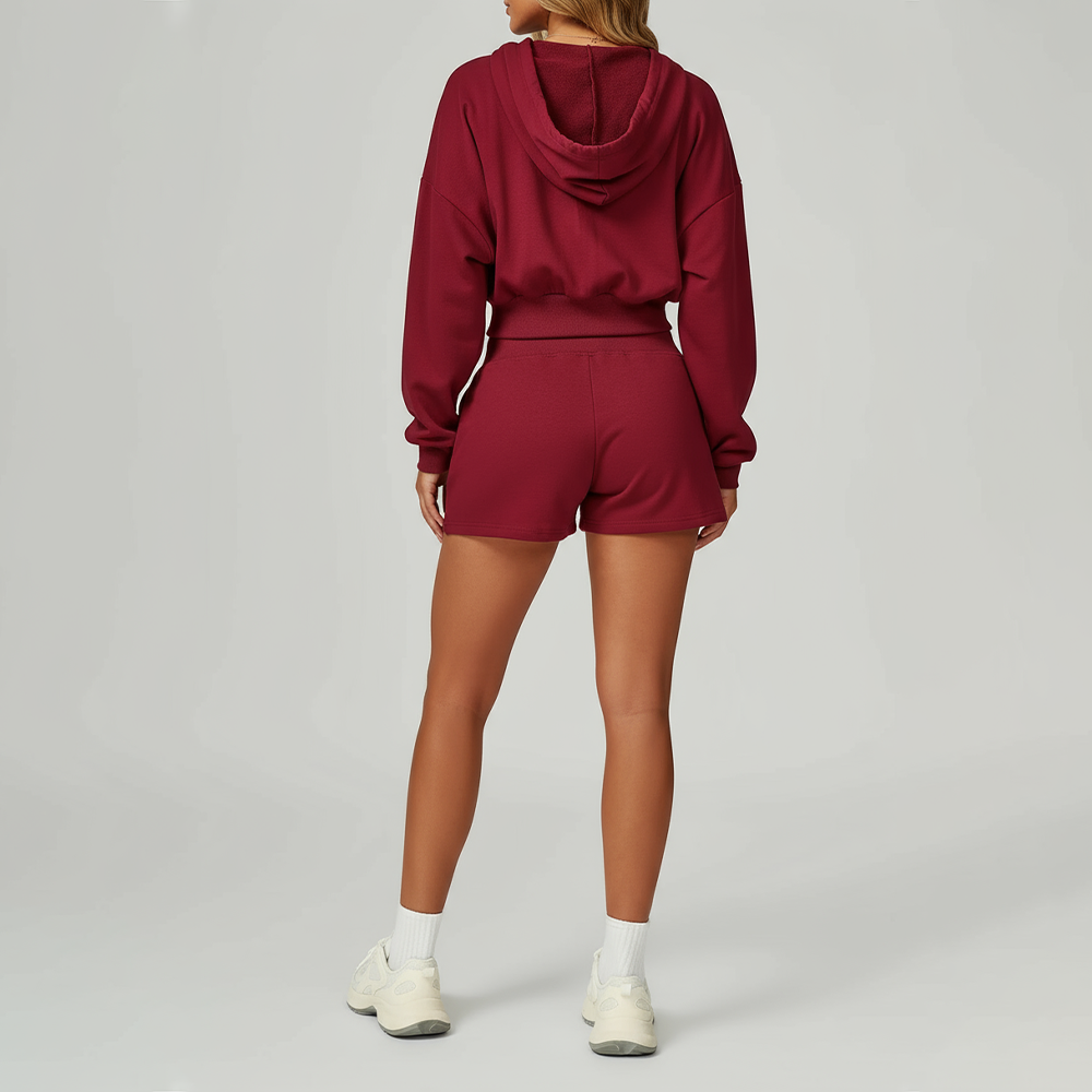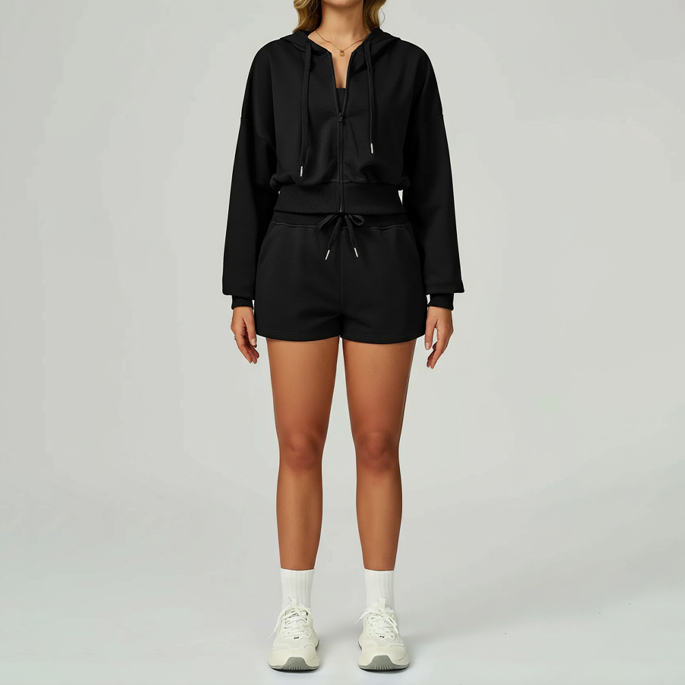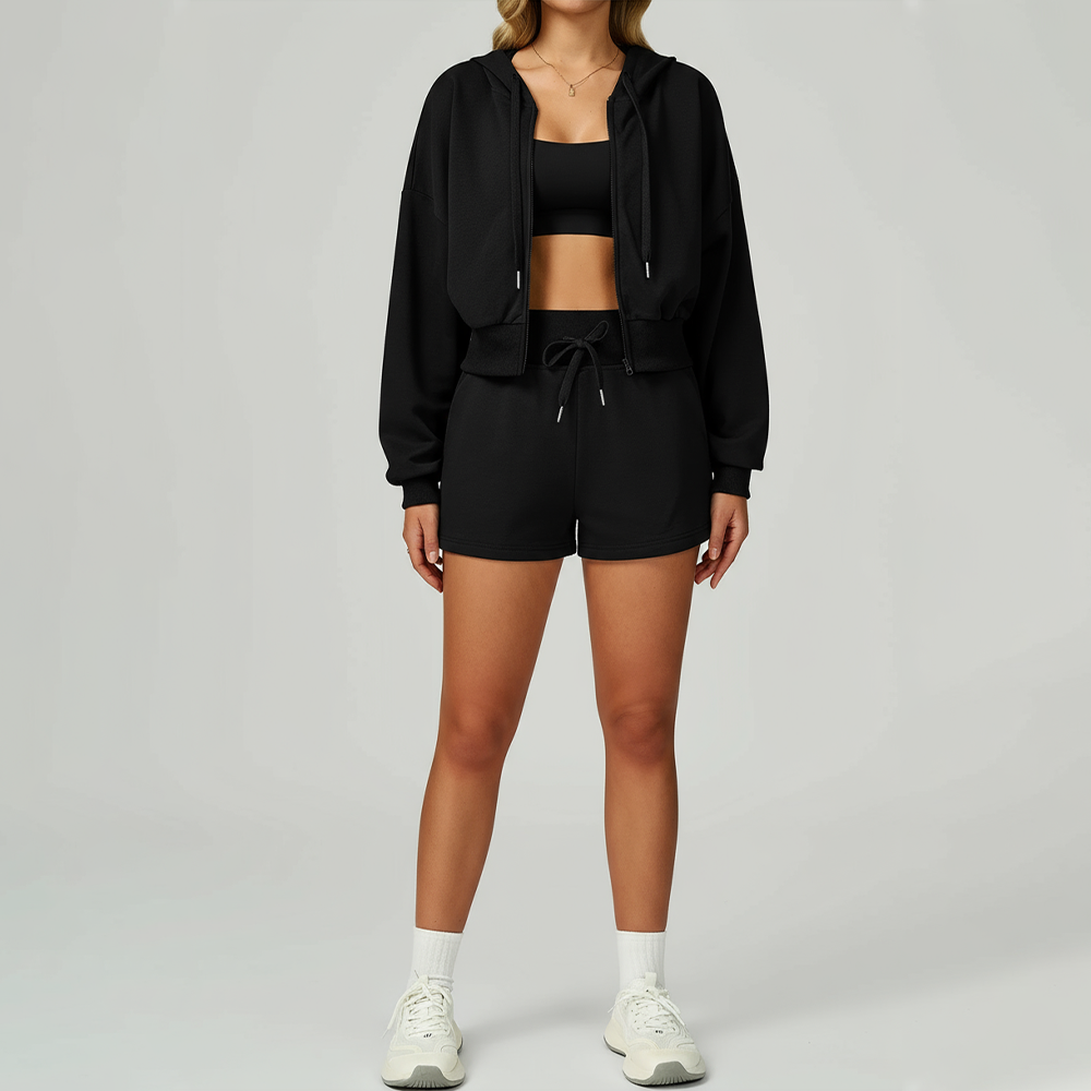 Style moderne - Coupe crop tendance, pantalon large fluide et veste zippée à capuche pour un look athleisure chic