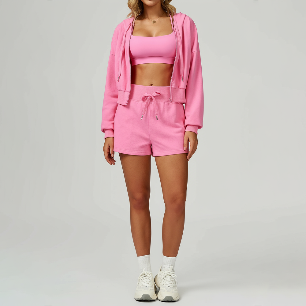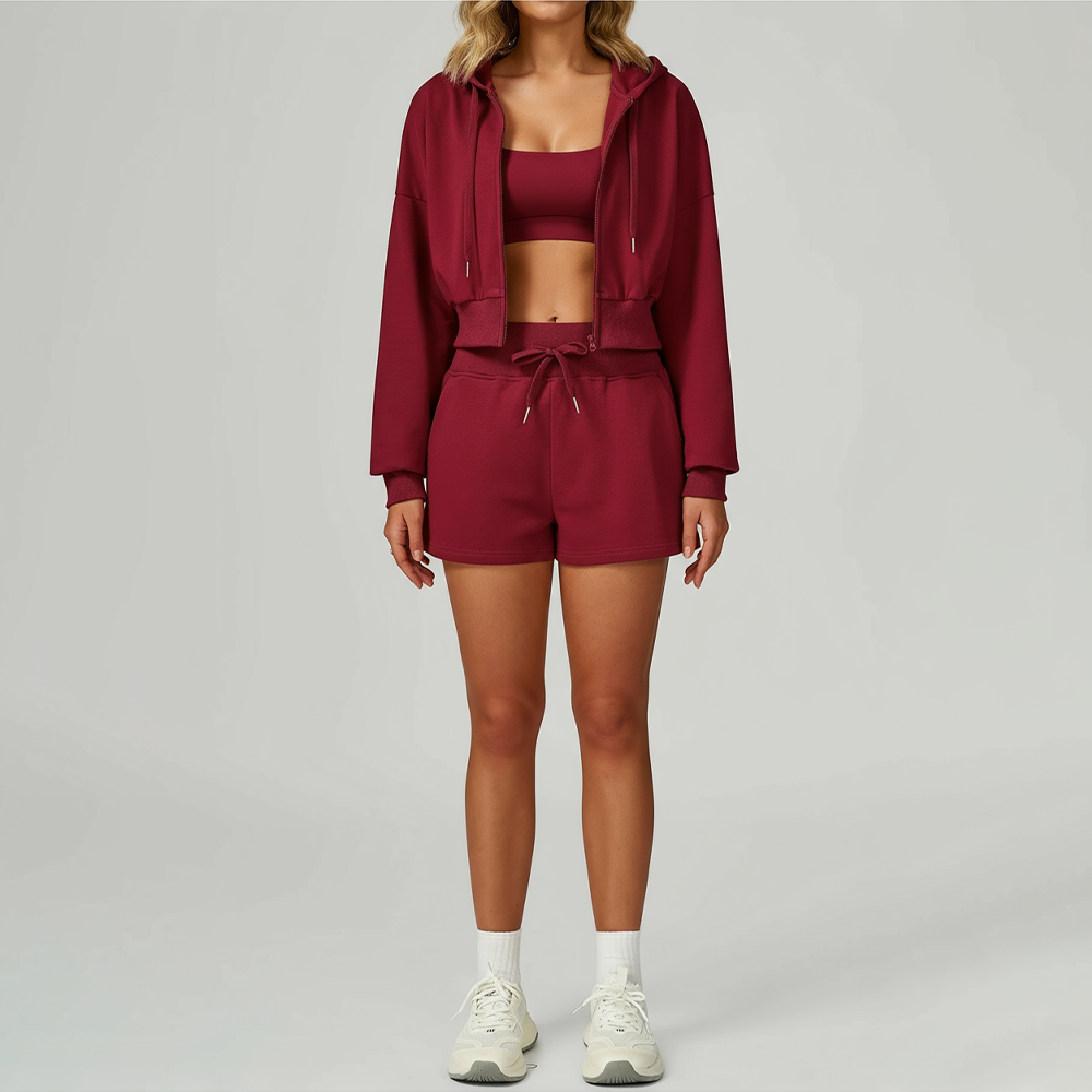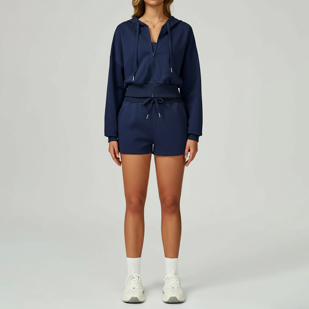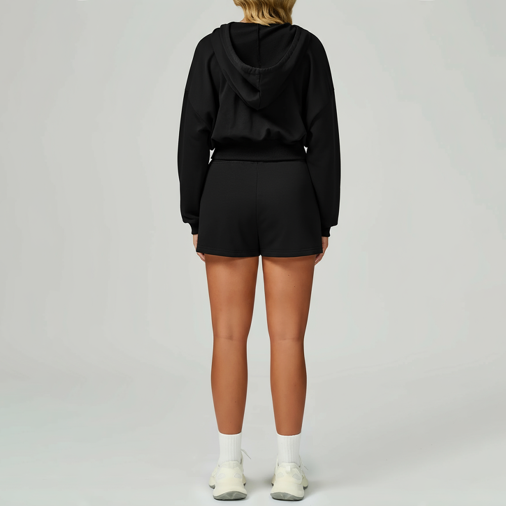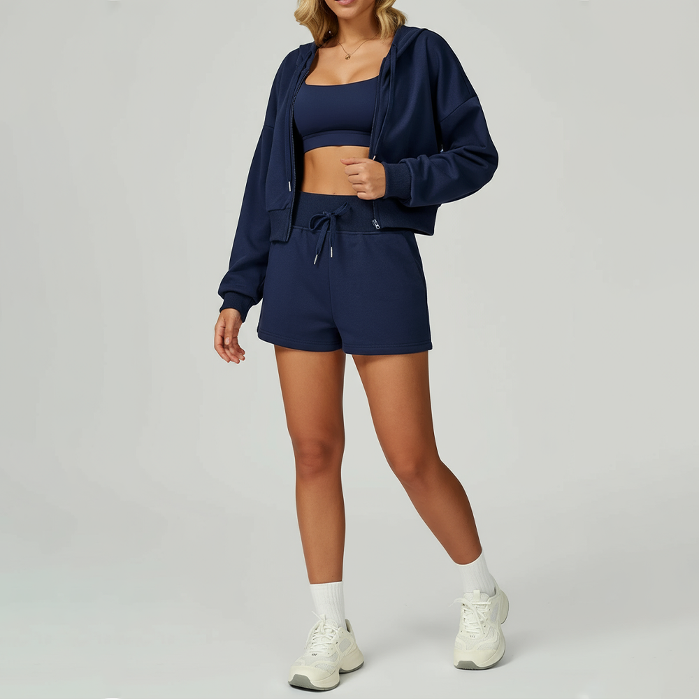 Style moderne - Coupe crop tendance, pantalon large fluide et veste zippée à capuche pour un look athleisure chic